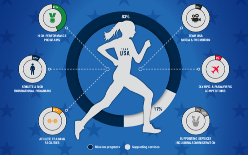 Approximately 82 percent of the USOPC’s budget has a direct impact on its mission of supporting athletes, while 12 percent is used to raise hundreds of millions of dollars for Team USA via marketing and fundraising, and the remaining 6 percent covers the cost of administration. By supporting, empowering and protecting athletes across all stages of development, the USOPC is invested in not only getting athletes to the podium, but also in how they get there and how they transition into life after sport.