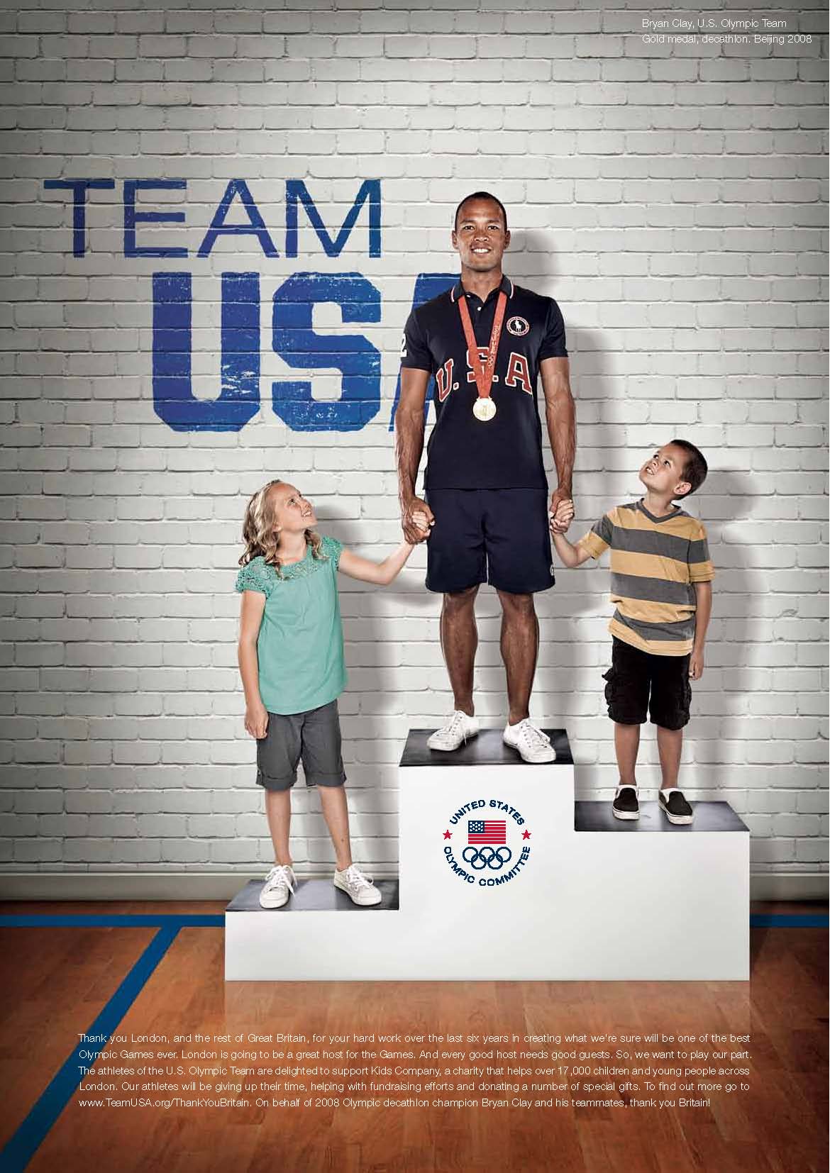 To contribute to London's Olympic and Paralympic Games and say, "Thank You," to the 2012 hosts, America’s athletes gave back by raising funds and support for disadvantaged UK children who are involved with Kids Company - a London-based organization that helps the most deprived and ‘at risk’ children across London by providing a safe and caring, family environment.