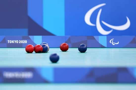 Boccia balls during a Boccia training session ahead of the Tokyo 2020 Paralympic Games at Ariake Gymnastics Centre on August 23, 2021 in Tokyo, Japan.
