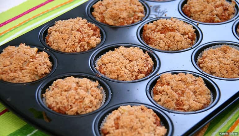 - Add wet ingredients to flour bowl and stir until just moist. Squeeze shredded apple to get rid of excess moisture, then add and stir.