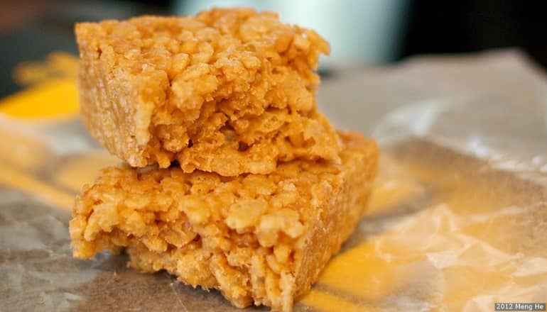 Substitute another type of nut butter such as almond, cashew, or sunflower seed for the peanut butter if you prefer. Choose a whole grain puffed rice cereal to increase the fiber content of these snacks. Store extra in the freezer for up to 2 months.