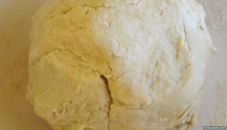 - Fold additional flour into the dough, turning the dough about 45 degrees each time, until the dough feels firm and dry and forms a ball (2-5 minutes).
