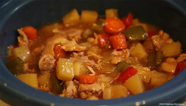 - Place chicken in slow cooker, pour sauce on top, and cook on high for 5 or more hours.