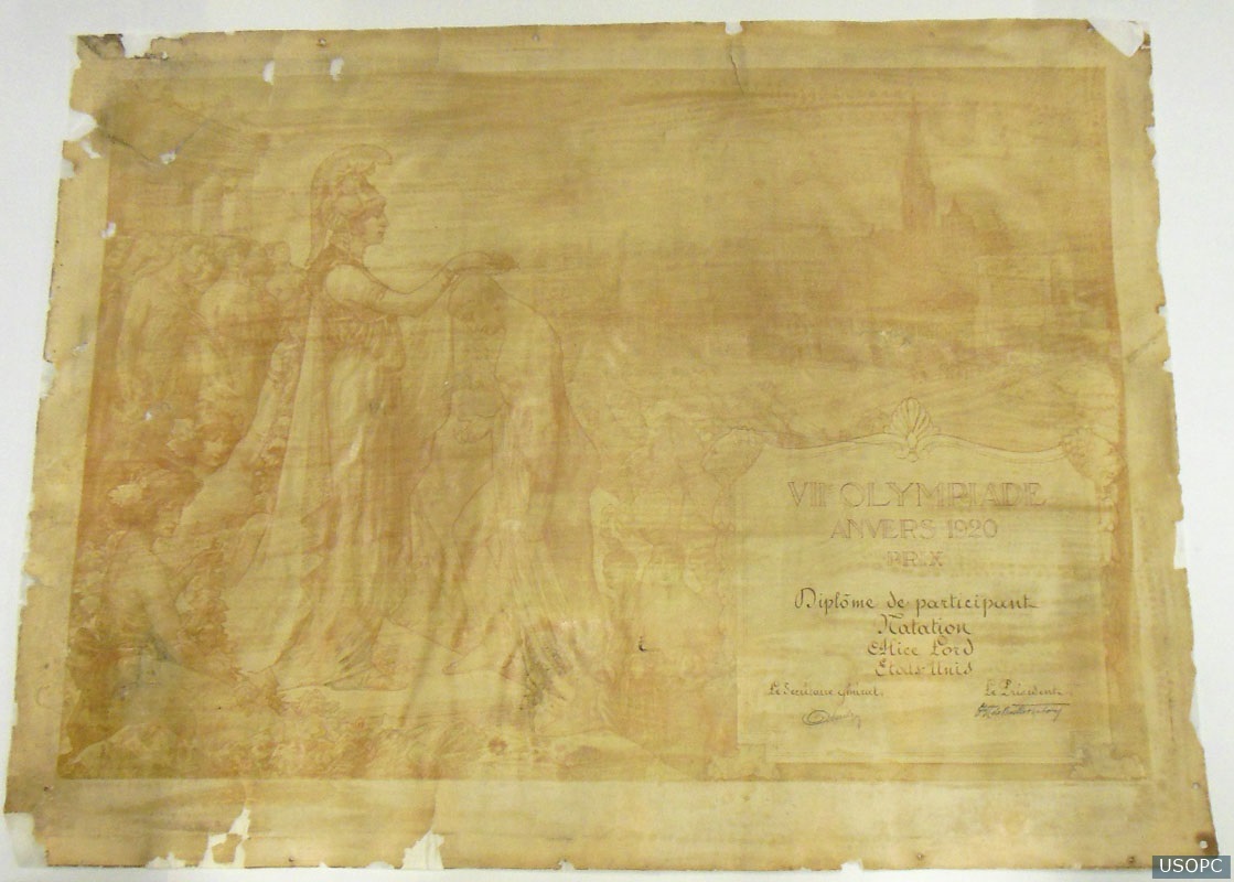 - The most delicate artifacts are Alice Lord and Dick Landon’s Olympic participant diplomas from the Olympic Games Antwerp 1920. Lord was a diver and Landon competed in the high jump, where he won gold. The two met on the boat transporting the U.S. Olympic Team to Antwerp and were married in 1922.