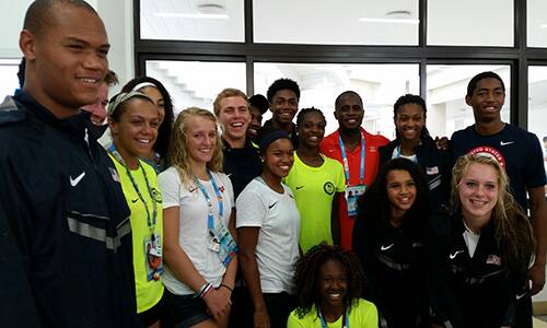 A unique part of the Youth Olympic Games is that our athletes have access to Athlete Role Models — retired or currently competing Olympians who participate in CEP activities, host question and answer sessions, are around the dining hall, and are available to meet one-on-one with delegations. Yesterday, Team USA had the opportunity to meet with Dwight Phillips, Olympic gold medalist and five-time world champion long jumper.