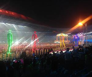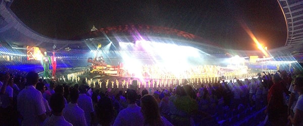 The Nanjing Organizing Committee, the performers and the hundreds of volunteers did an amazing job combining tradition and culture, putting on a fantastically entertaining performance consisting of astronomy, metal working, ribbon dance and even a human chandelier. The stadium was filled with thousands of spectators and athletes, who could probably be heard all the way in Beijing from the noise clappers that were awaiting every attendee at his or her seat.