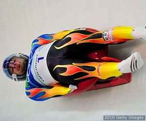 | Chris Mazdzer competes during the men's singles luge competition at the Vancouver 2010 Olympic Winter Games at Whistler Sliding Centre in Whistler, Canada on Feb.13, 2010. |