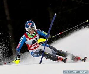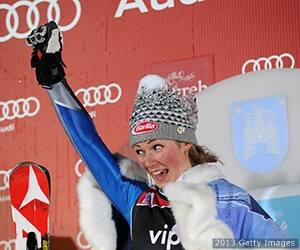 | Mikaela Shiffrin takes first place during the Audi FIS Alpine Ski World Cup women's slalom on January 4, 2013 in Zagreb, Croatia. |