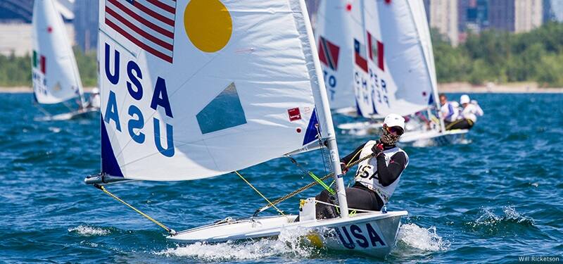Paige Railey sails a Laser Radial upwind during a race at the Toronto 2015 Pan American Games in Toronto on July 17, 2015.