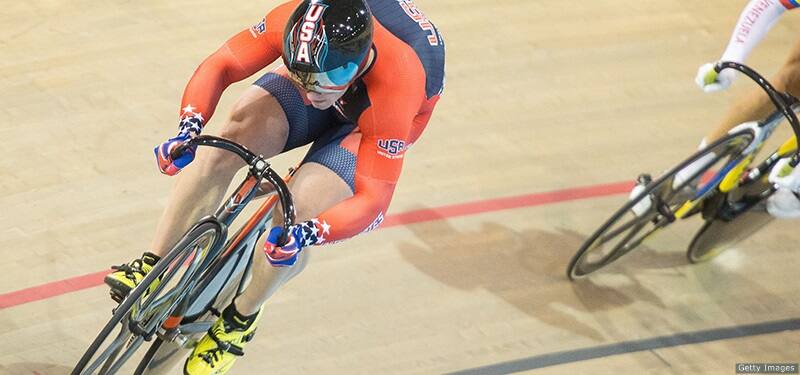 Matt Baranoski (L) leads in his men's cycling sprint quarterfinals at the Toronto 2015 Pan American Games in Toronto on July 17, 2015.
