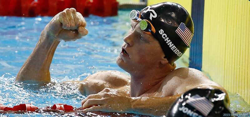 Josh Schneider reacts after winning the men's 50-meter final at the Toronto 2015 Pan American Games on July 17, 2015 in Toronto.