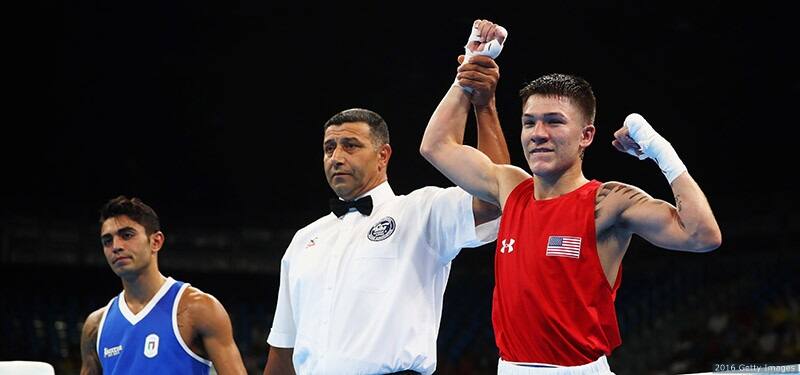 Nico Hernandez celebrates victory over Manuel Cappai of Italy after their men's light flyweight 49 kg. preliminary bout at the Rio 2016 Olympic Games at Riocentro Pavilion 6 on Aug. 6, 2016 in Rio de Janeiro.