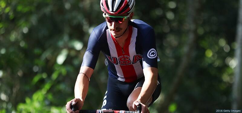 Taylor Phinney rides during the men's road race at the Rio 2016 Olympic Games at Fort Copacabana on Aug. 6, 2016 in Rio de Janeiro.