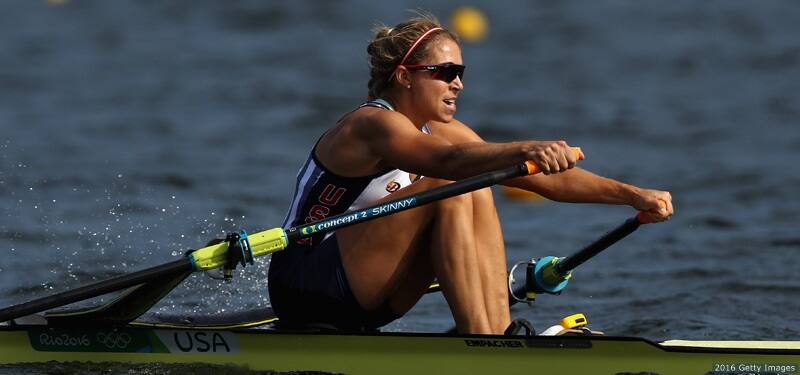 Gevvie Stone competes in the women's single sculls at the Rio 2016 Olympic Games at the Lagoa Stadium on Aug. 6, 2016 in Rio de Janeiro.