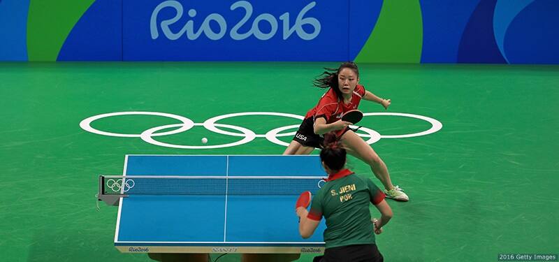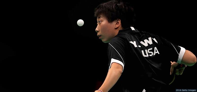 Lily Zhang plays a Women's Singles second round match against Jieni Shao of Portugal at the Rio 2016 Olympic Games at Riocentro Pavilion 3 on Aug. 6, 2016 in Rio de Janeiro. Zhang pulled off an upset, beating Shao to advance to the round of 32.