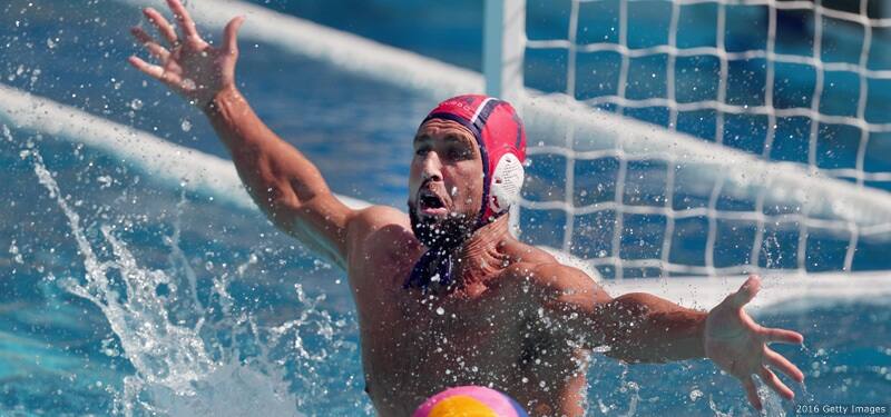 Merrill Moses blocks a shot against Croatia in the men's water polo preliminary round at the Maria Lenk Aquatics Centre on Aug. 6, 2016 in Rio de Janeiro.