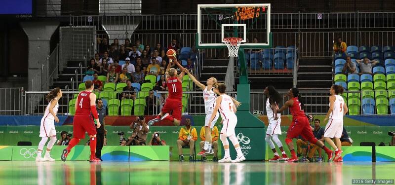 Elena Delle Donne attempts a shot against Spain in the women's basketball game at the Rio 2016 Olympic Games at the Youth Arena on Aug. 8, 2016 in Rio de Janeiro.