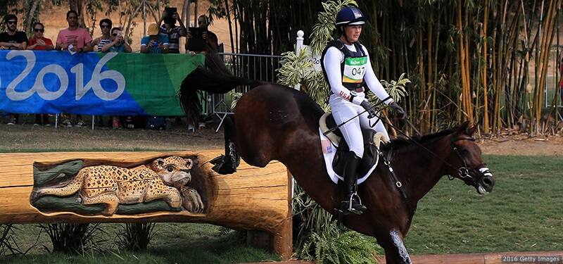 Lauren Kieffer rides Veronica as she clears a jump in cross country eventing at the Rio 2016 Olympic Games at the Olympic Equestrian Centre on Aug. 8, 2016 in Rio de Janeiro.