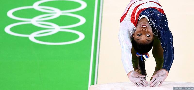 Simone Biles competes on the vault in the artistic gymnastics women's team final at the Rio 2016 Olympic Games at the Rio Olympic Arena on Aug. 9, 2016 in Rio de Janeiro. Biles scored a 15.933 on vault.