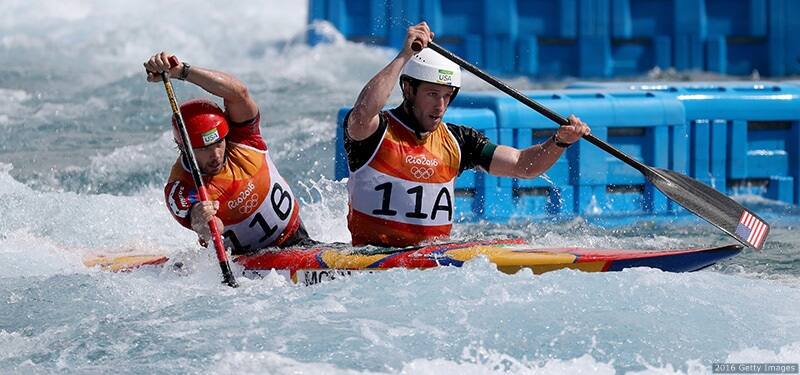 Devin McEwan and Casey Eichfeld compete in the men's canoe double (C2) semifinal at the Rio 2016 Olympic Games at Whitewater Stadium on Aug. 11, 2016 in Rio de Janeiro.
