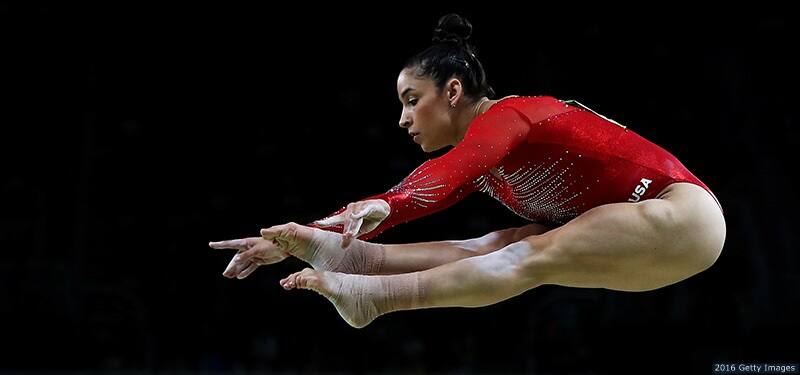 Aly Raisman competes on the balance beam in the women's individual all-around final at the Rio 2016 Olympic Games at Rio Olympic Arena on Aug. 11, 2016 in Rio de Janeiro.