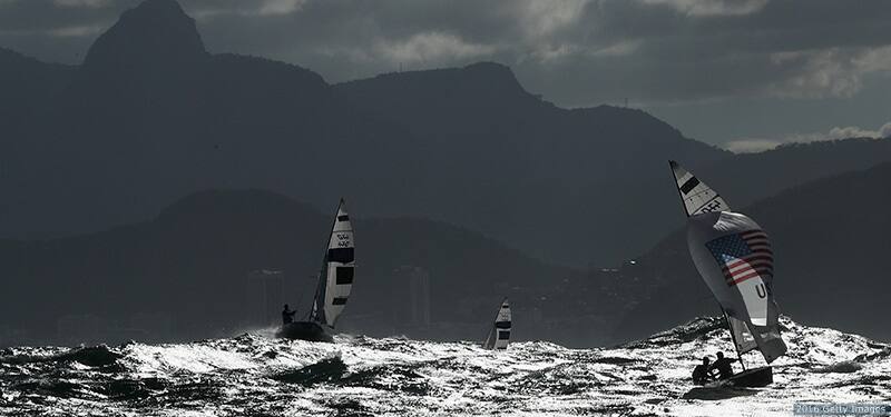 Stu McNay and Dave Hughes compete in the men's 470 class at the Rio 2016 Olympic Games at Marina da Gloria on Aug. 11, 2016 in Rio de Janeiro.