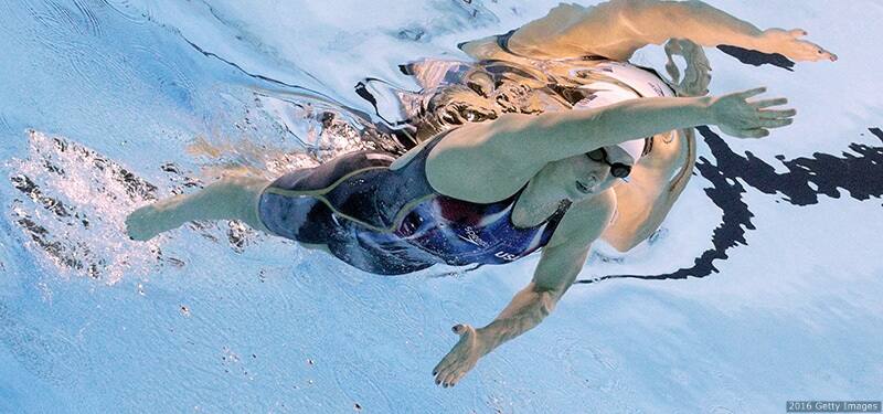 Katie Ledecky competes in the women's 800-meter freestyle at the Rio 2016 Olympic Games at the Olympic Aquatics Stadium on Aug. 11, 2016 in Rio de Janeiro.
