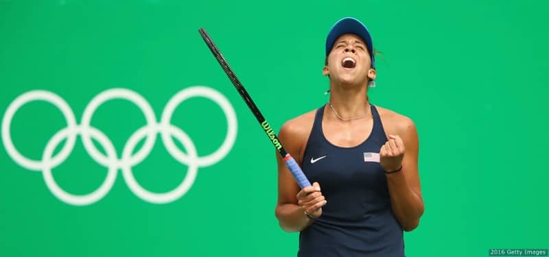 Madison Keys celebrates match point in the women's singles quarterfinal match against Daria Kasatkina of Russia at the Rio 2016 Olympic Games at the Olympic Tennis Centre on Aug. 11, 2016 in Rio de Janeiro.