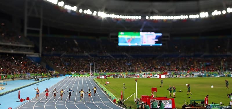 Torie Bowie nears the finish line in the women's 100-meter at the Rio 2016 Olympic Games at the Olympic Stadium on Aug. 13, 2016 in Rio de Janeiro.