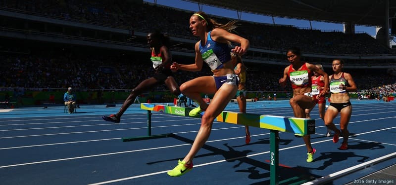 Courtney Frerichs competes in the women's 3,000-meter steeplechase at the Rio 2016 Olympic Games at the Olympic Stadium on Aug. 13, 2016 in Rio de Janeiro.