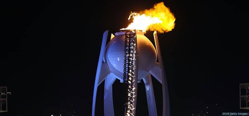 The Olympic cauldron is lit during the Opening Ceremony of the Olympic Winter Games PyeongChang 2018 on Feb. 9, 2018 in PyeongChang, South Korea.
