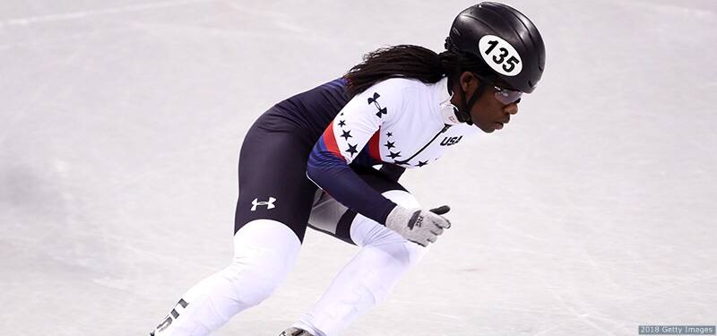 Maame Biney competes in the women's 500-meter short track speedskating heats at the Olympic Winter Games PyeongChang 2018 on Feb. 10, 2018 in Gangneung, South Korea.