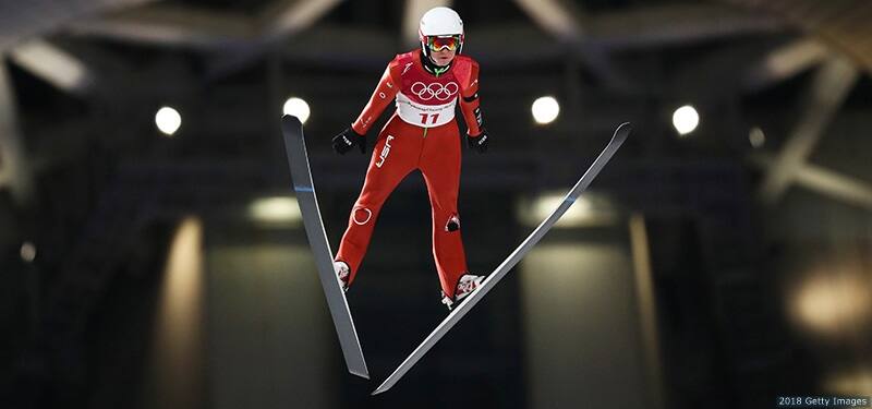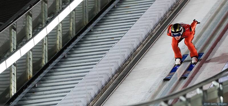 Michael Glasder makes a jump during the men's individual normal hill ski jumping final at the Olympic Winter Games PyeongChang 2018 on Feb. 10, 2018 in PyeongChang, South Korea.