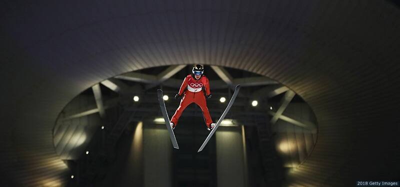 Michael Glasder takes a trial jump ahead of the men's normal hill individual final at the Olympic Winter Games PyeongChang 2018 on Feb. 10, 2018 in PyeongChang, South Korea.