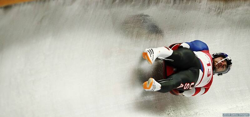 Chris Mazdzer competes in men's singles luge at the Olympic Winter Games PyeongChang 2018 on Feb. 10, 2018 in PyeongChang, South Korea.