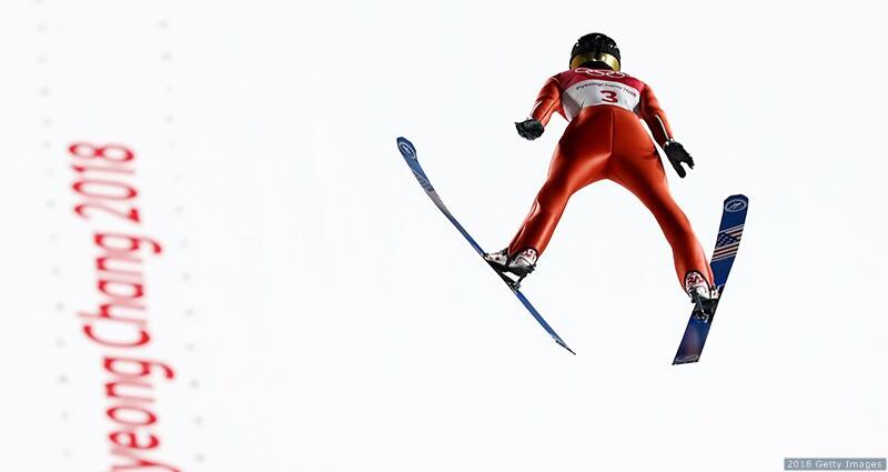 Michael Glasder makes a jump during the ski jumping men's large hill at the Olympic Winter Games PyeongChang 2018 on Feb. 17, 2018 in PyeongChang, South Korea.