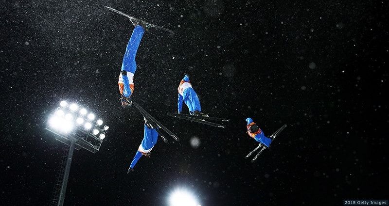 Eric Loughran trains ahead of the freestyle skiing men's aerials qualification at the Olympic Winter Games PyeongChang 2018 on Feb. 17, 2018 in PyeongChang, South Korea.