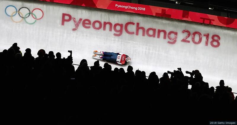 Katie Uhlaender slides in the women's skeleton heat three at the Olympic Winter Games PyeongChang 2018 on Feb. 17, 2018 in PyeongChang, South Korea.