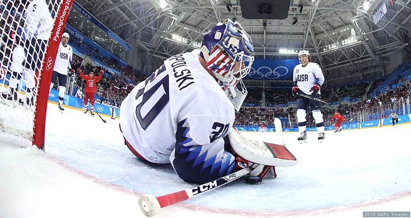 Ryan Zapolski competes in Team USA's game against Olympic Athlete from Russia at the Olympic Winter Games PyeongChang 2018 on Feb. 17, 2018 in Gangneung, South Korea.