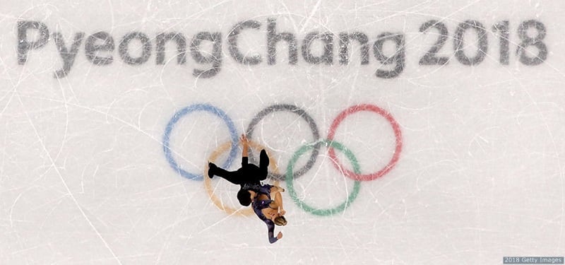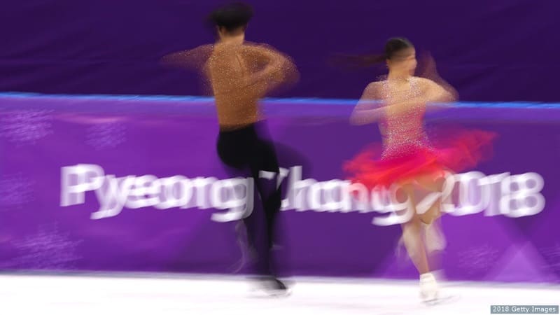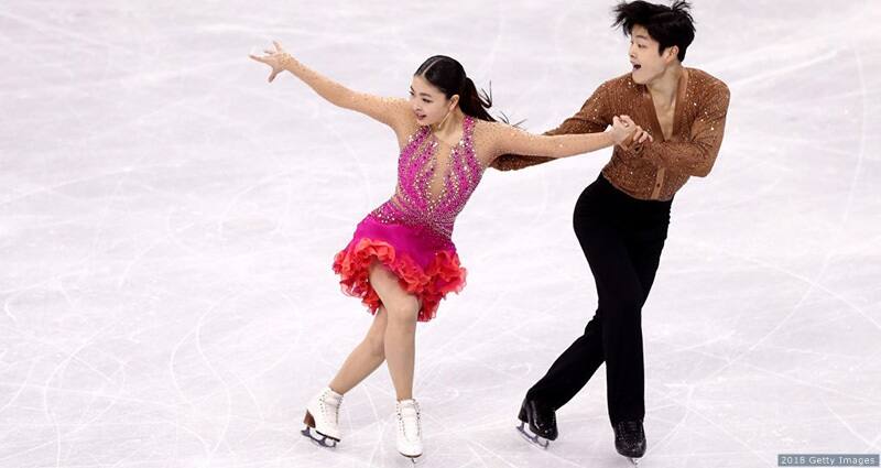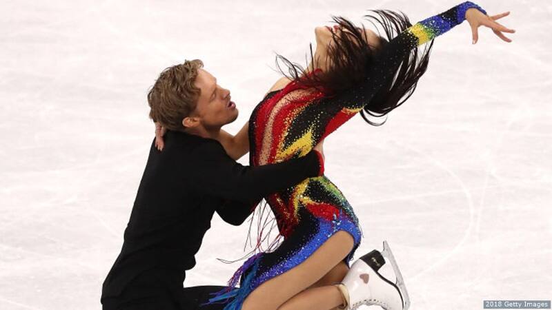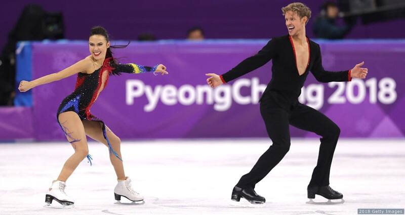 Madison Chock and Evan Bates compete in the figure skating ice dance short dance at the Olympic Winter Games PyeongChang 2018 on Feb. 19, 2018 in PyeongChang, South Korea.