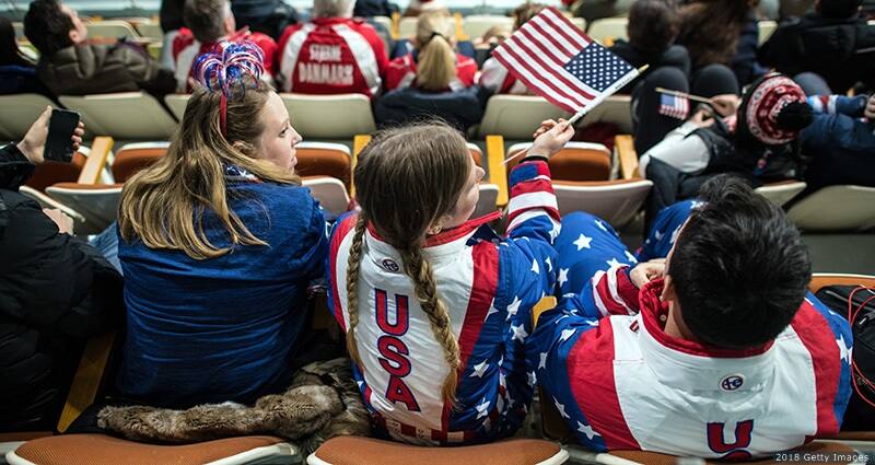 Team USA fans look on during the men's curling round robin matches at the Olympic Winter Games PyeongChang 2018 on Feb. 19, 2018 in Gangneung, South Korea.