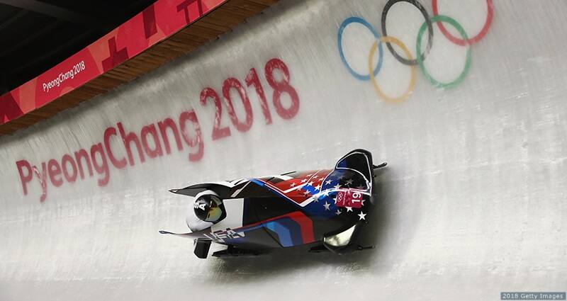 Justin Olsen and Evan Weinstock slide in the men's two-man bobsled race at the Olympic Winter Games PyeongChang 2018 on Feb. 19, 2018 in PyeongChang, South Korea.
