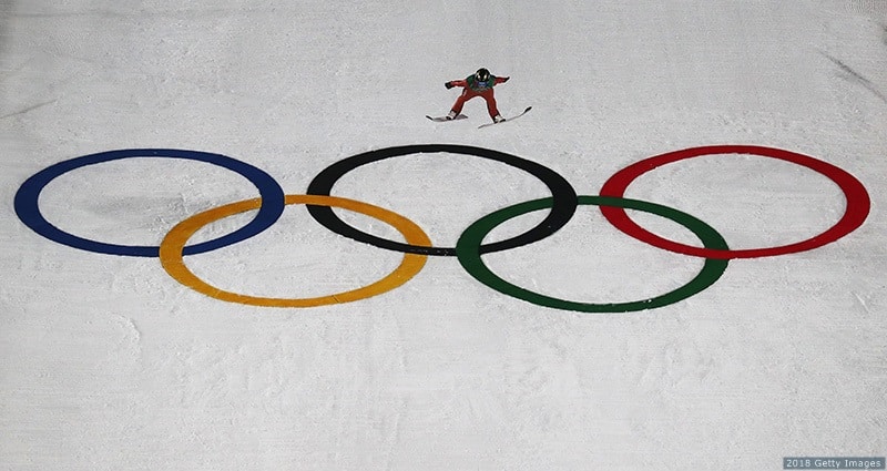 Will Rhoads jumps in the ski jumping men's team large hill at the Olympic Winter Games PyeongChang 2018 on Feb. 19, 2018 in PyeongChang, South Korea.