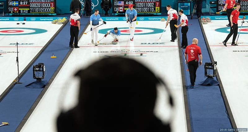 Team Shuster competes against Canada in curling men's round robin at the Olympic Winter Games PyeongChang 2018 on Feb. 19, 2018 in Gangneung, South Korea.
