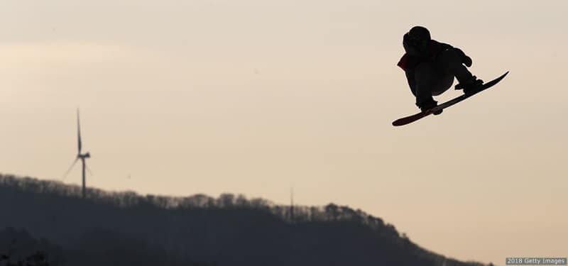 Red Gerard competes in men's snowboard big air qualification at the Olympic Winter Games PyeongChang 2018 on Feb. 21, 2018 in PyeongChang, South Korea.