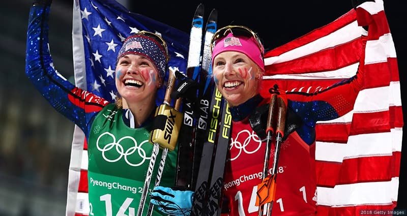 19) Diggins And Randall Celebrate Winning Gold In Women's Team Sprint