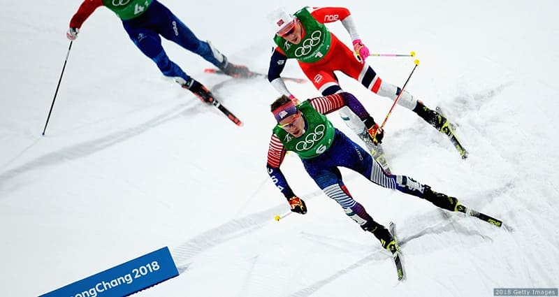 Simi Hamilton competes in the cross-country men's team sprint free semi final at the Olympic Winter Games PyeongChang 2018 on Feb. 21, 2018 in PyeongChang, South Korea.