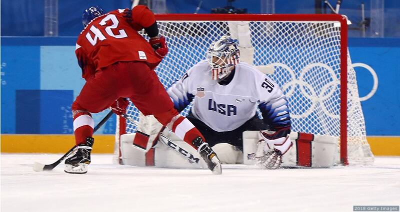 Ryan Zapolski defends in an overime shootout against the Czech Republic at the Olympic Winter Games PyeongChang 2018 on Feb. 21, 2018 in Gangneung, South Korea.