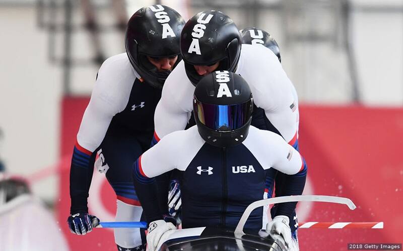 Nick Cunningham, Hakeem Abdul-Saboor, Christopher Kinney and Sam Michener compete in four-man bobsled at the Olympic Winter Games PyeongChang 2018 on Feb. 24, 2018 in PyeongChang, South Korea.