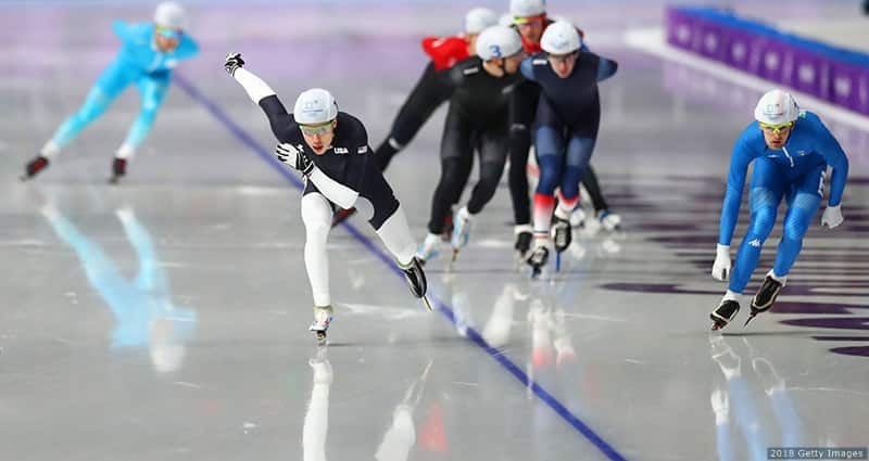Brian Hansen competes in the men's speedskating mass start at the Olympic Winter Games PyeongChang 2018 on Feb. 24, 2018 in Gangneung, South Korea.